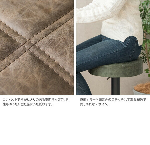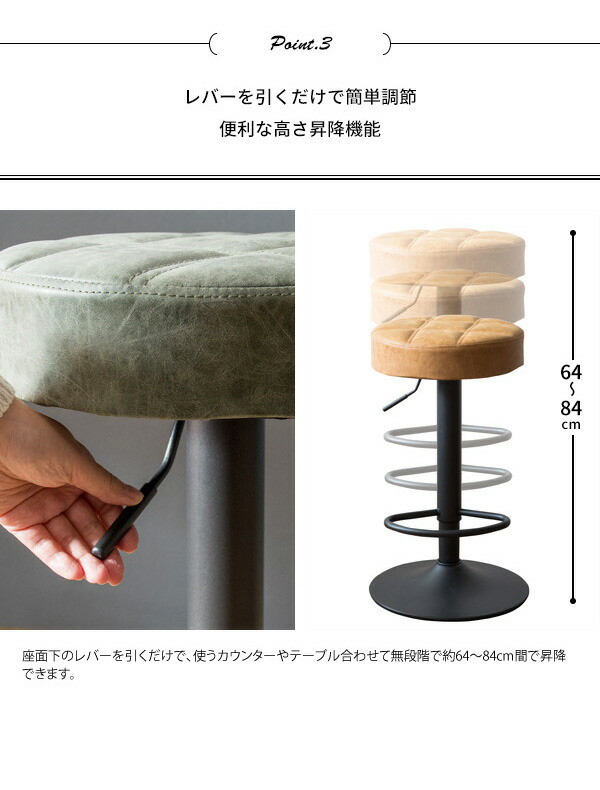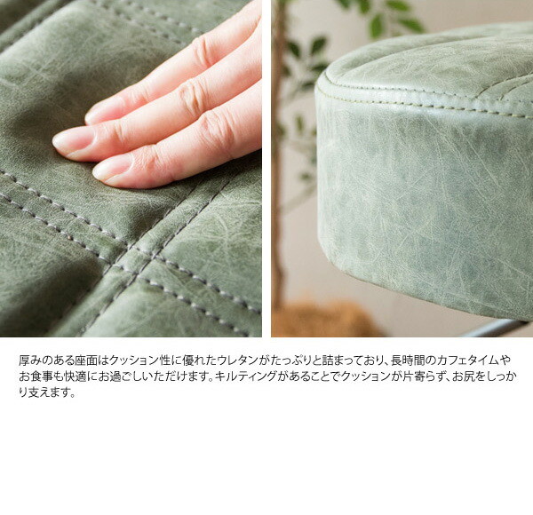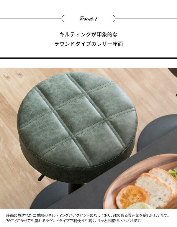 趣あるキルティングデザインのレザー座面がおしゃれなラウンドバーチェア「Charma(シャルマ)」。
