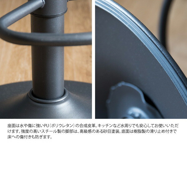 合成皮革(PU)、ウレタン、スチール(粉体塗装)