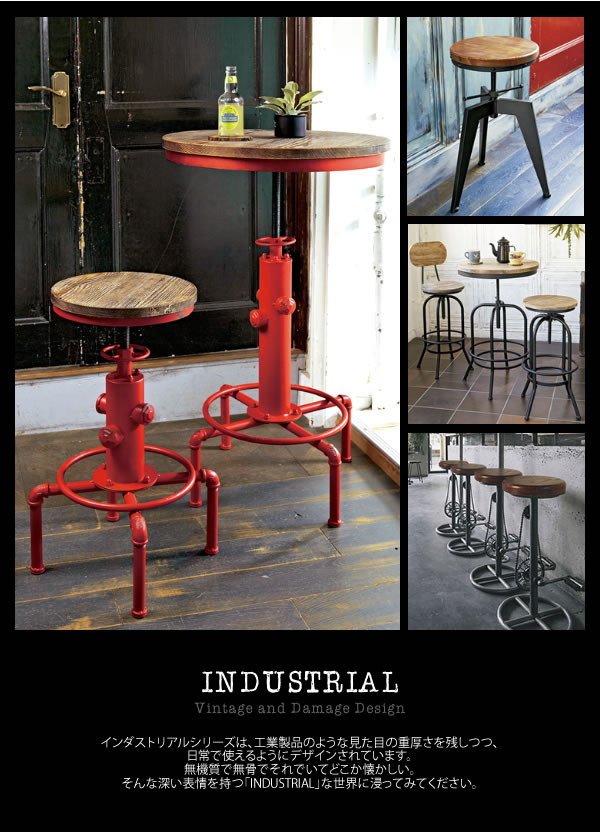工業製品のような重厚さを活かしつつ、日常で使えるようにデザインされた「INDUSTRIAL(インダストリアル)」シリーズのバーテーブル。