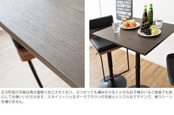 シンプルなスクエアテーブルはゆっくりとお茶を楽しむカフェや大人なバー使いなど、様々なシーンでお使いいただけます。