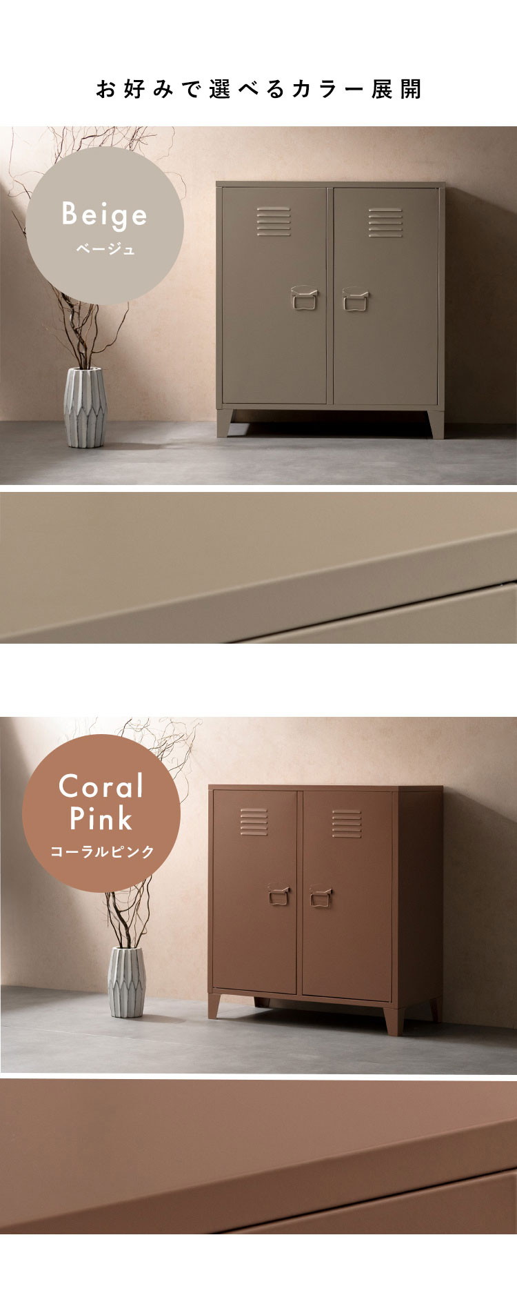 ロッカー Muun ムーン 2枚扉 幅80cm 奥行40cm 高さ90cm マット スチール 整理整頓 収納 収納棚 ベージュ