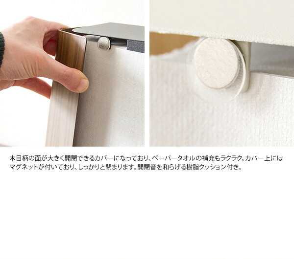 ペーパータオルを収納することで水・油撥ねやホコリからペーパータオルを守り、いつも清潔に保てます。 大きく開くカバーで、大容量のペーパーもラクラク補充。キッチンペーパーやティッシュケースもセット可能です。