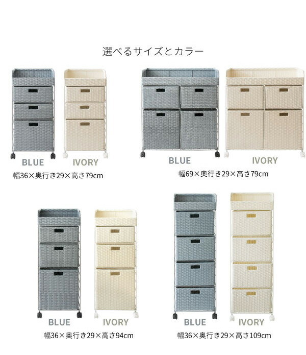 ラタン調 ランドリーボックス Diario(ディアリオ) 3段 幅36cm 高さ79cm フタ付き ブルー