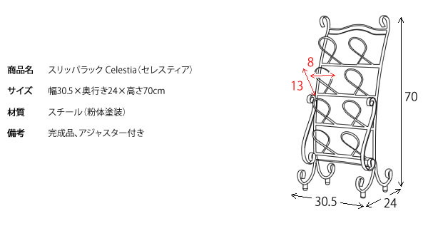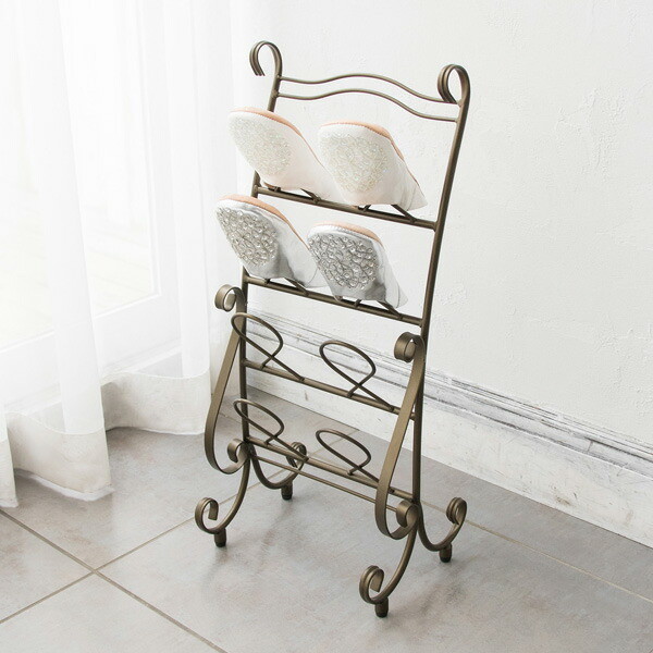 曲線をあしらった装飾の洗練されたデザイン、心地よさを醸し出すアンティークゴールドが人気の『Celestia(セレスティア)』シリーズのスリッパラック。