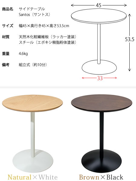サイドテーブル Santos(サントス) テーブル サイド ブラウン