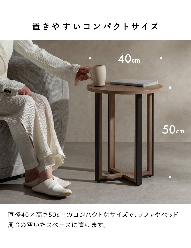 サイドテーブル ラウンドサイドテーブル ラウンド天板 ソファ横 ベッド横 テーブル シンプル コンパクトサイズ 高さ50cm ソファサイド ブラウン
