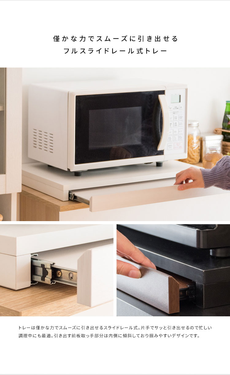 必要な時だけ引き出せる便利なスライドトレーで、使わないときも邪魔にならず、手狭なキッチンのお家やワンルームなど、一人暮らしの方にもオススメです。