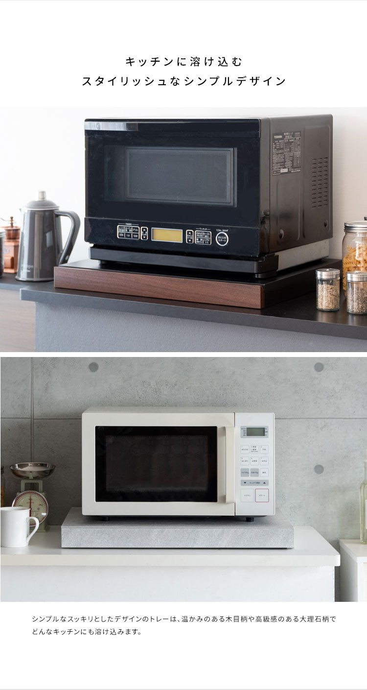 レンジや家電の下に置くだけで作業スペースが作れるレンジ下トレー「Avenir(アベニール)」。トレーに調理器具や料理がサッと置けて家事効率アップ間違いなし。