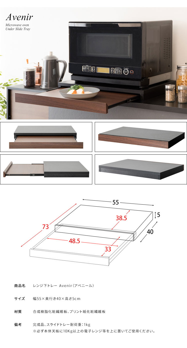 レンジ下 トレー Avenir(アベニール) レンジトレー レンジ台 木目調 収納ラック トレー 置き台 キッチン収納 ブラウン
