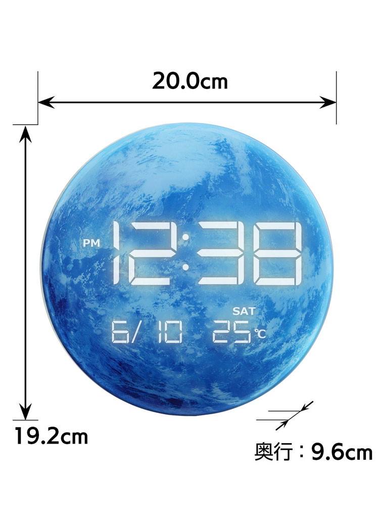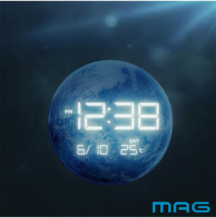 MAG マグ 置き時計 LED デジタル AC電源 地球 星 インテリア 夜見える 光る 温度計
