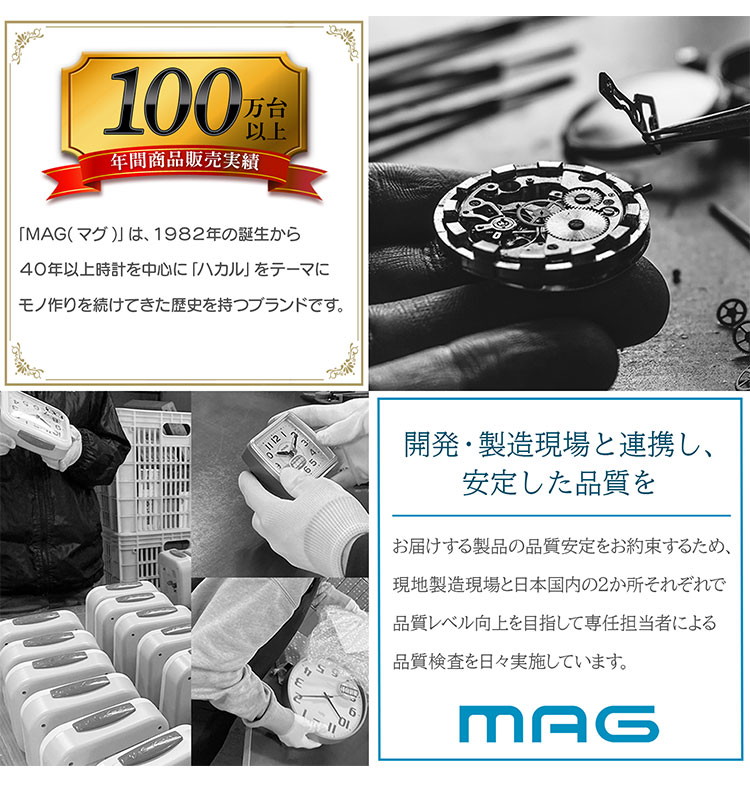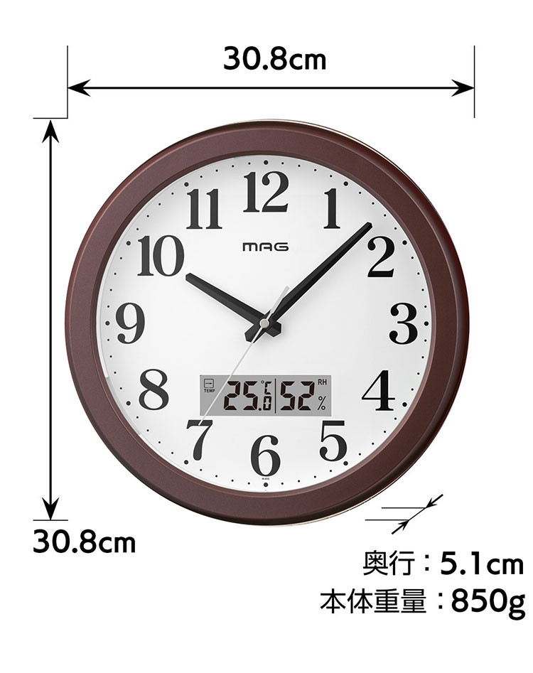 MAG 掛け時計 壁掛け時計 アナログ 温度計 湿度計 温湿度計 自動点灯 暗くなるとライトが光り続ける 静音