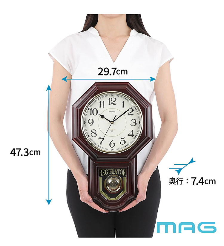 MAG マグ 掛け時計 壁掛け 柱時計 アナログ 静音 連続秒針 アンティーク レトロ 振り子 メロディ ボンボン
