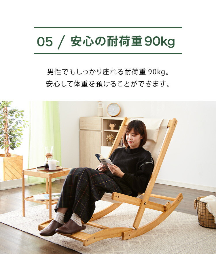 国産 中居木工 折りたたみ出来る ロッキングチェアー オットマン付き 折りたたみ可能でコンパクトに収納 北欧風 椅子