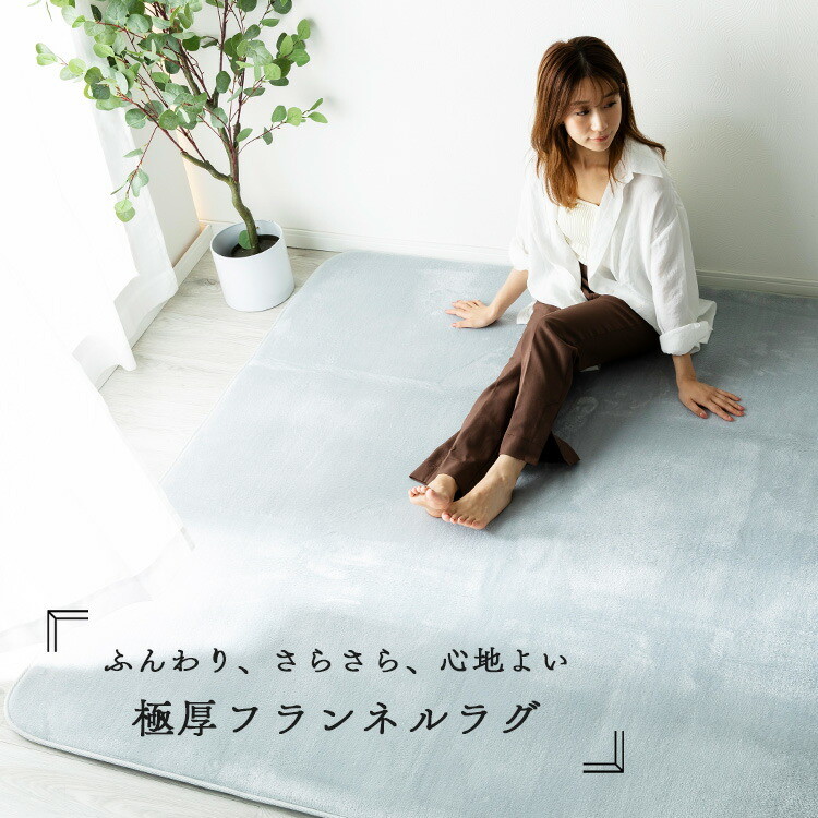 洗える オールシーズン 極厚ラグ 185×185 2畳 厚み25mm 防ダニ 抗菌防臭 超極細フランネル ラグマット 滑り止め付 マット ラグカーペット ブラウン