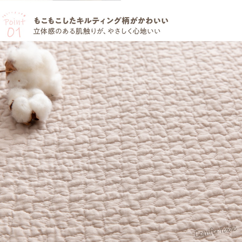 くもの形のキルト加工で、ぽこぽこ感がかわいい綿100%のソファパッド。さらっとした肌触りでべとづかず、ソファーの汚れ防止や、足元マットなどマルチに活躍
