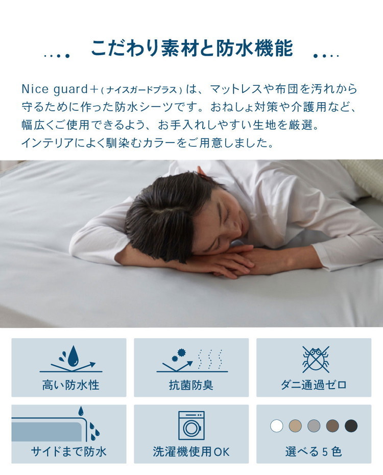 防水 ボックスシーツ ダブル D 140×200cm Nice guard+ サイドまでしっかり防水シーツ 抗菌 防臭 ブラック