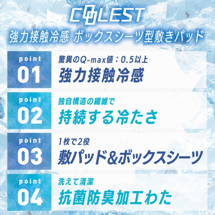 強力接触冷感 敷パッド一体型ボックスシーツ Q-MAX0.5 セミダブル 120×200×30cm 洗える 丸洗い