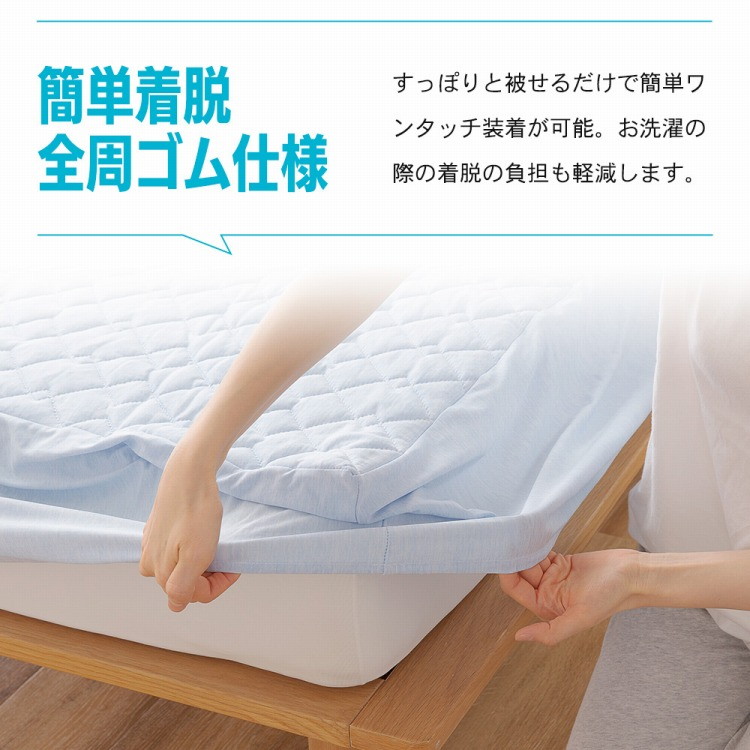 強力接触冷感 敷パッド一体型ボックスシーツ Q-MAX0.5 ダブル 140×200×30cm 洗える 丸洗い 洗濯