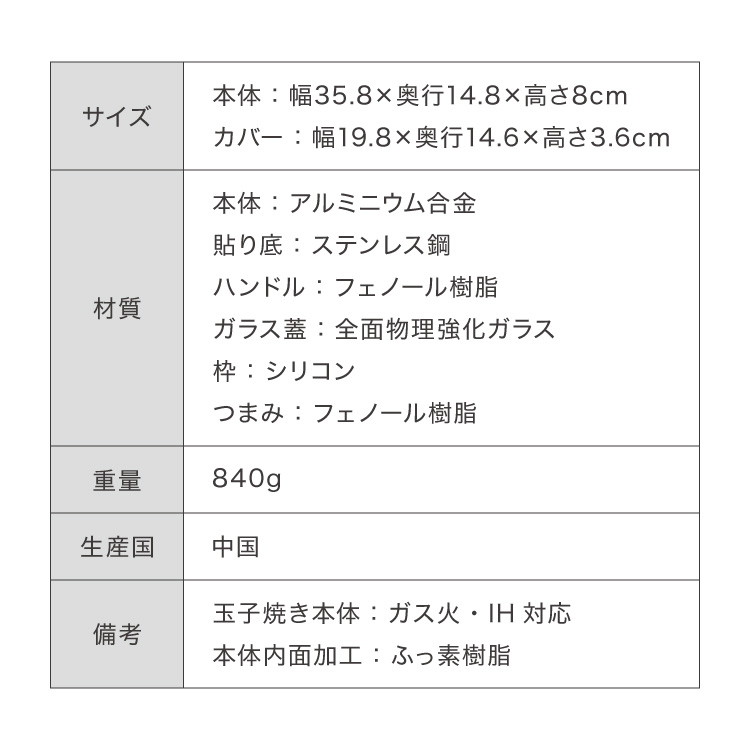 玉子焼き本体:ガス火・IH対応