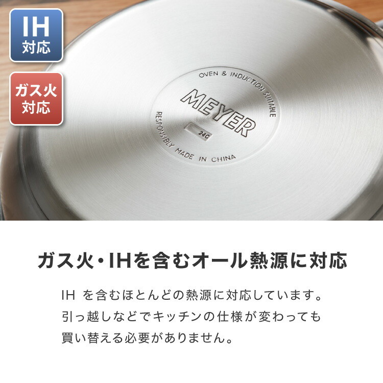 MEYER マイヤー フライパン 26cm 日本製ステンレス採用 ガス火 IH対応 オール熱源対応 PFOAフリー テフロン フッ素
