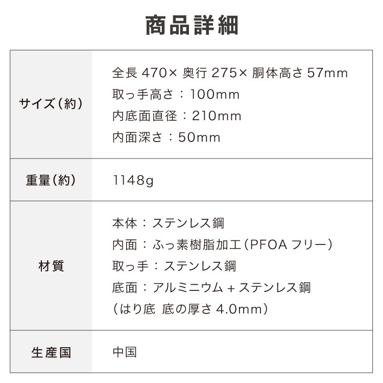 内面:ふっ素樹脂加工(PFOAフリー)
