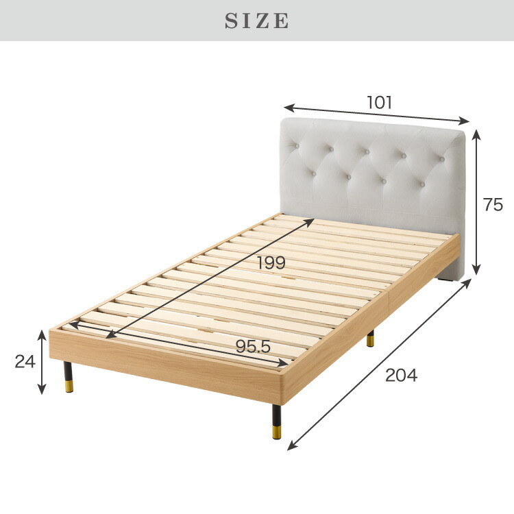 幅101×奥行204×高さ75cm(ベッド面高さ:24cm)