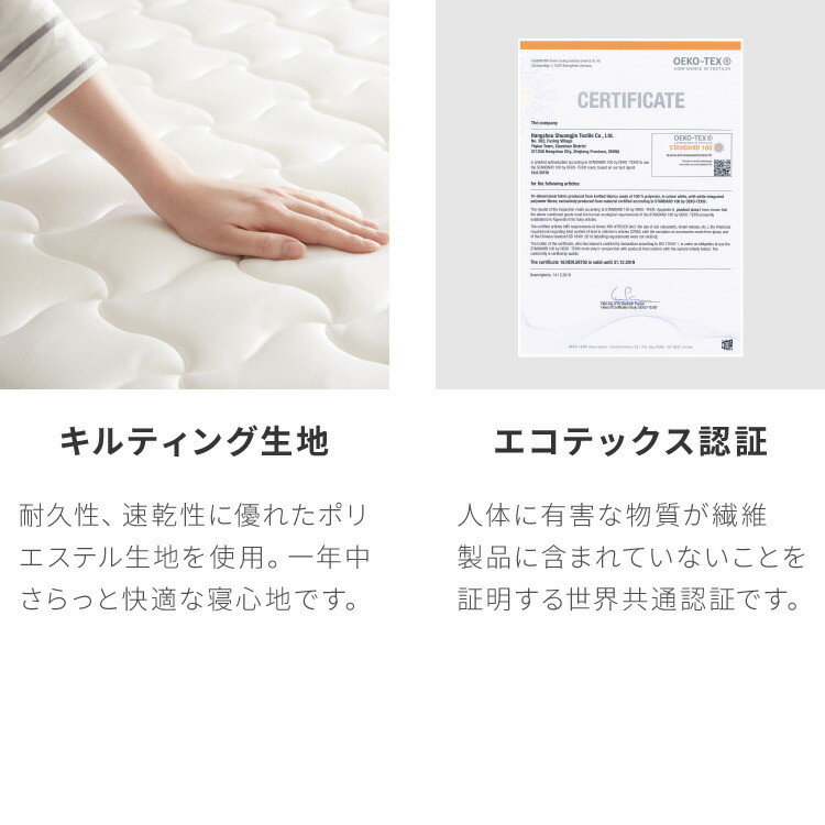 シングル:幅97×長さ195×厚さ20cm(許容範囲±5%)