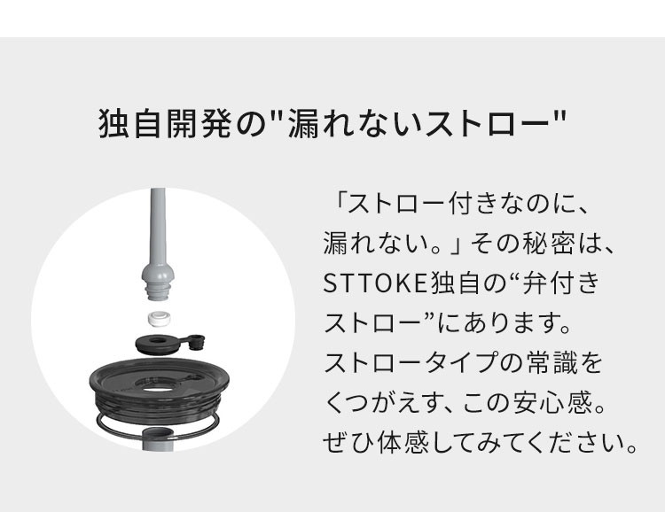 その秘密は、STTOKE独自の"弁付きストロー"にあります。