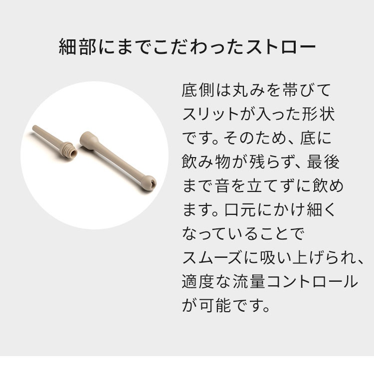均一の太さではなく口元にかき細くなっていることで、よりスムーズに吸い上げられます。