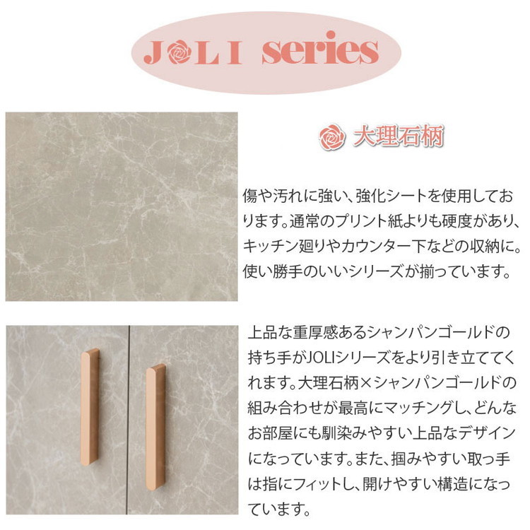 joli カウンター下収納 幅60 リビング 取っ手 ピンクゴールド 収納ケース タンス 薄型 一人暮らし