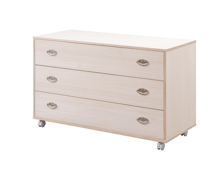 シルバー取っ手が華やかな桐クローゼットチェスト 幅99.5 奥行44 高さ61cm 3段タイプ キャスター付き