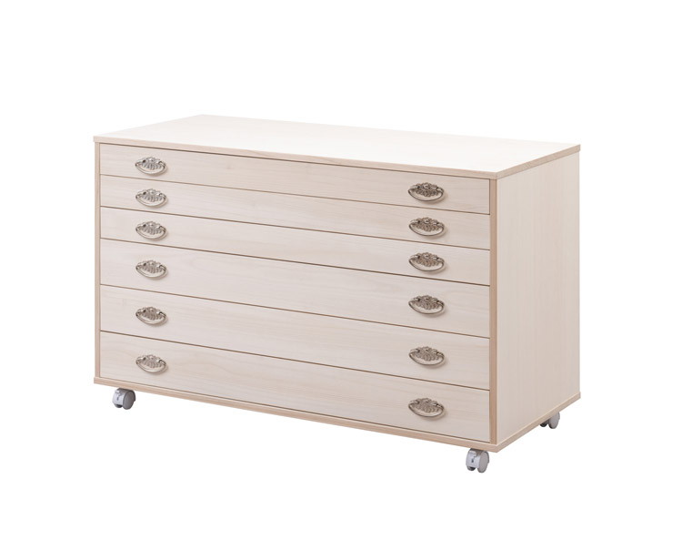 シルバー取っ手が華やかな桐クローゼットチェスト 幅99.5 奥行44 高さ61cm 6段タイプ キャスター付き