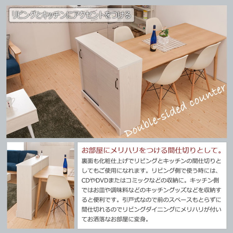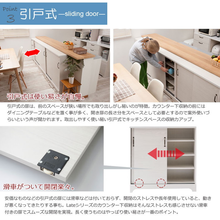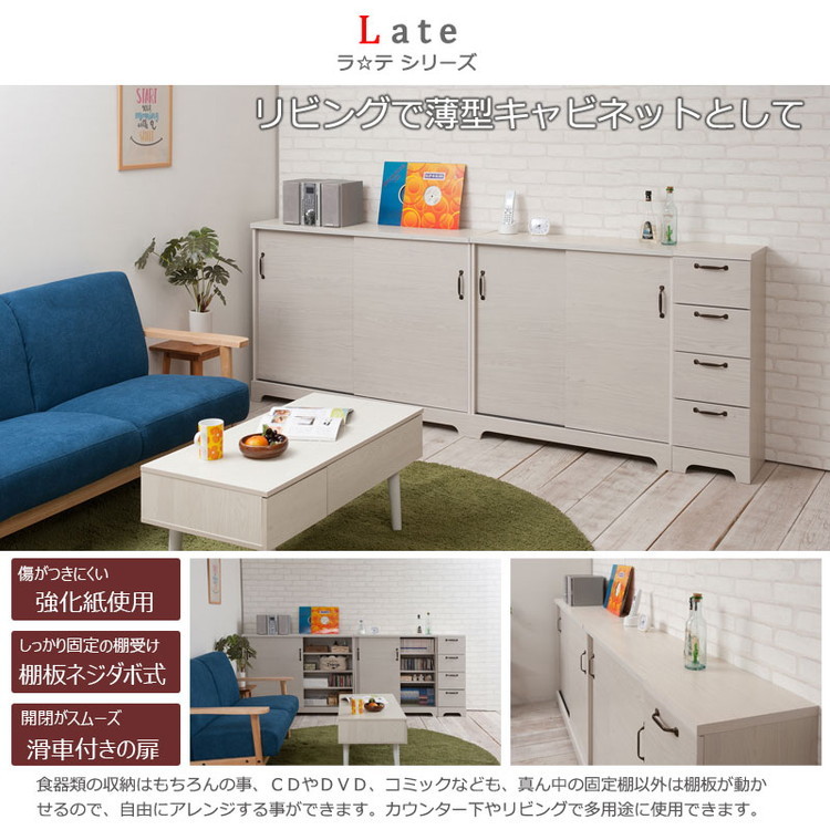 Late カウンター下収納チェスト 幅90 ホワイト 木目 カウンター下収納 引き戸 引き出し 幅30 ランドリー