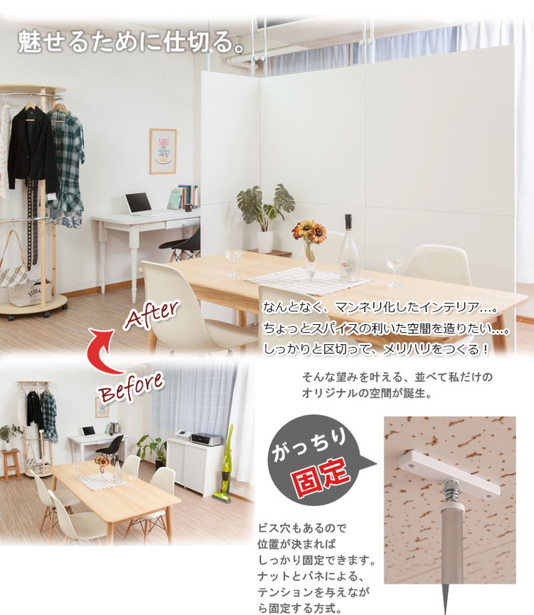 パーテーション 幅60 ホワイト ボードタイプ 間仕切り つっぱり 仕切り パネル シンプル オフィス リモートワーク