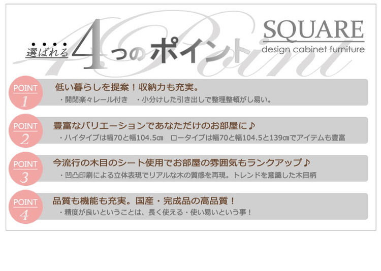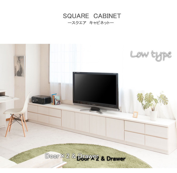 SQUARE キャビネット 幅70 ホワイト ロー 引出しタイプ ベンチチェスト ディスプレイ リビング ナチュラル