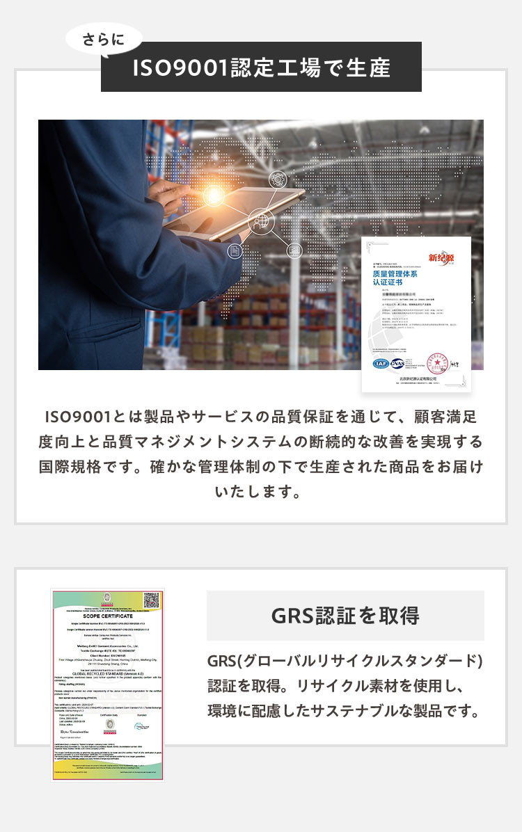 品質にもこだわり、ISO9001認証を取得した工場で生産され、厳格な管理のもとで製造されています。