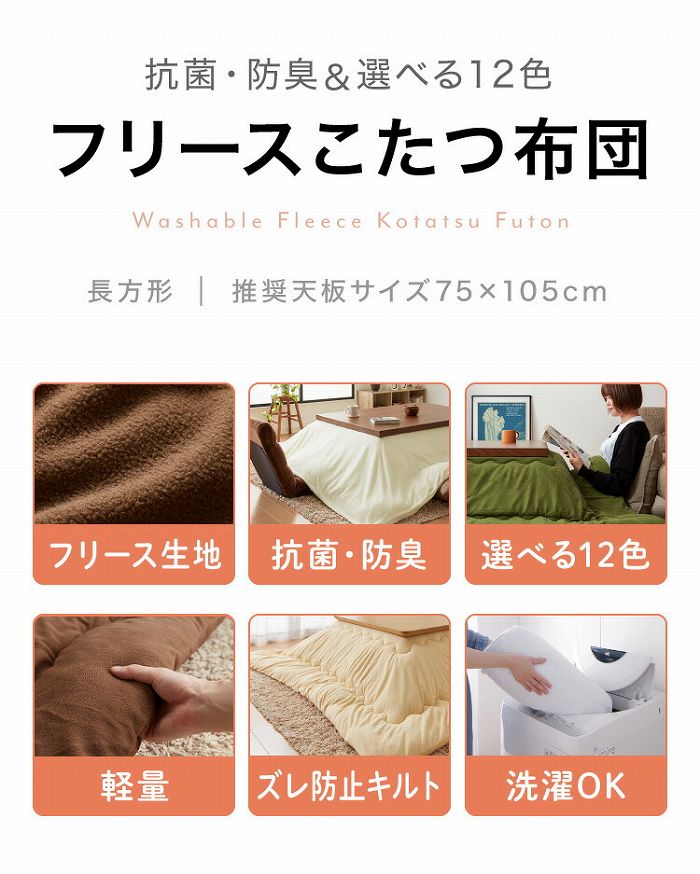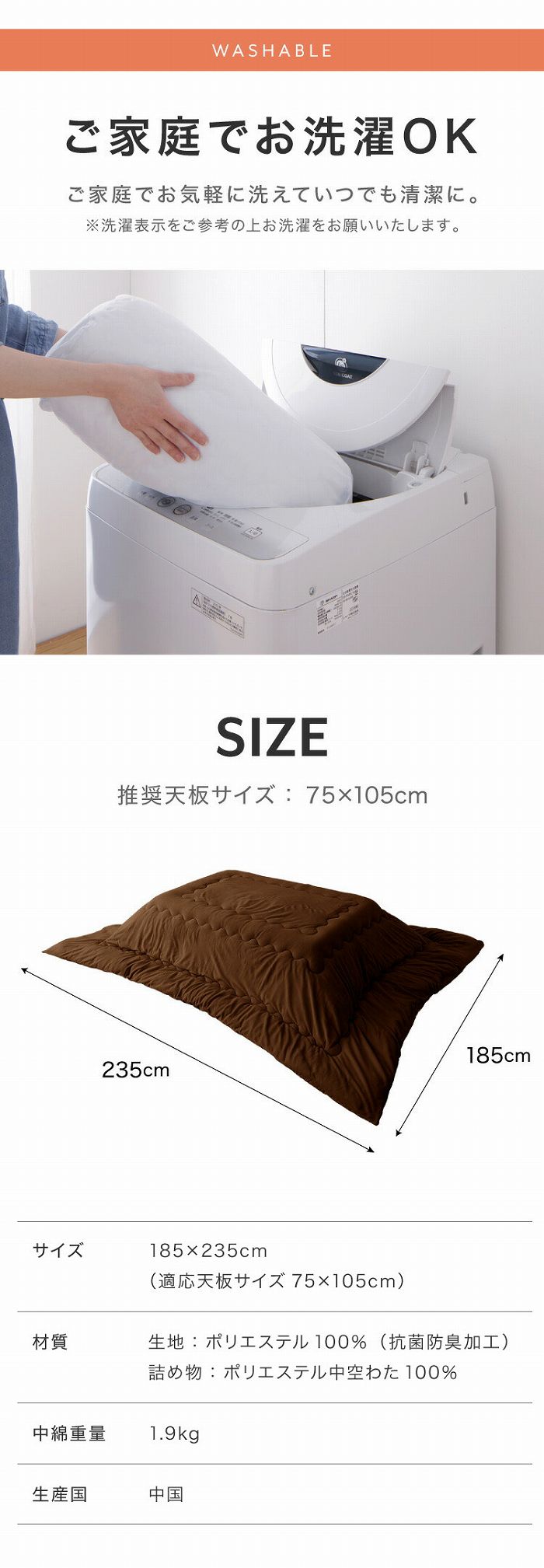 フリース こたつ布団 掛単品 長方形 185×235cm オフホワイト