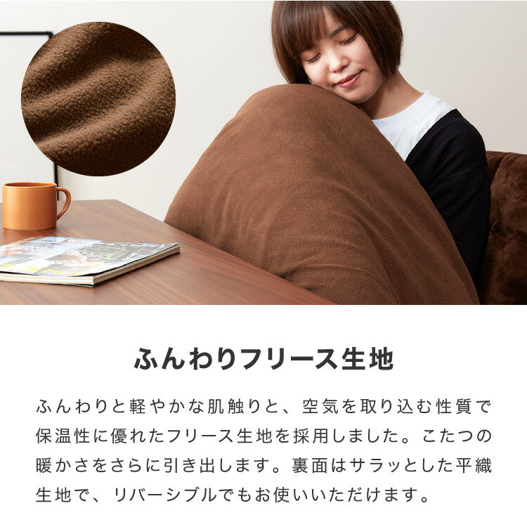 | 原材料/素材/材質 | ・こたつ掛け布団 [生地組成]ポリエステル100%(表生地フリース使用、抗菌防臭加工) [詰め物]ポリエステル中空綿100%(正方形:1.5kg/長方形:1.9kg) ・こたつラグ [表生地]ポリエステル100% [裏生地]ポリエステル100%(裏面ノンスリップ加工) [中綿]ポリエステル綿(150g/平方メートル) |