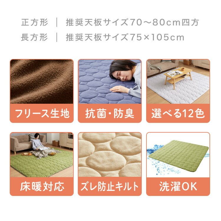 選べる12色×2サイズ フリースこたつ敷き布団 190×190cm 190×240cm 滑り止め付 抗菌防臭 床暖房対応 ネイビーブルー 正方形