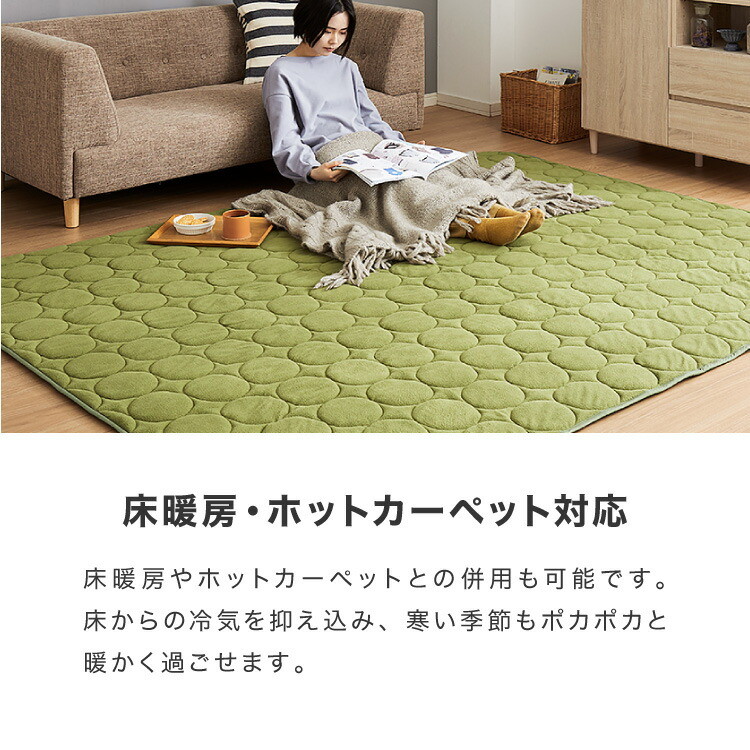 フローリングに合う丸いキルト採用でラグとしても楽しめます!