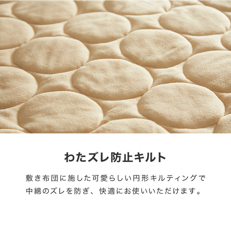 | 原材料/素材/材質 | [表生地]ポリエステル100% [裏生地]ポリエステル100%(裏面ノンスリップ加工) [中綿]ポリエステル綿(150g/平方メートル) |