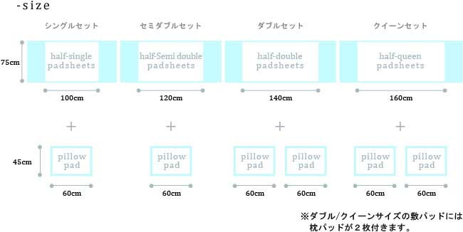 【敷パッド】幅100x長さ75cm、【枕パッド】幅60x縦45cm