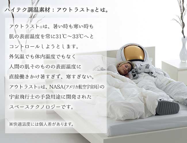 NASAで使用するグローブ用に開発された素材、アウトラストを使用した敷パッドと枕パッドのセットです。