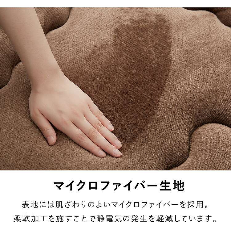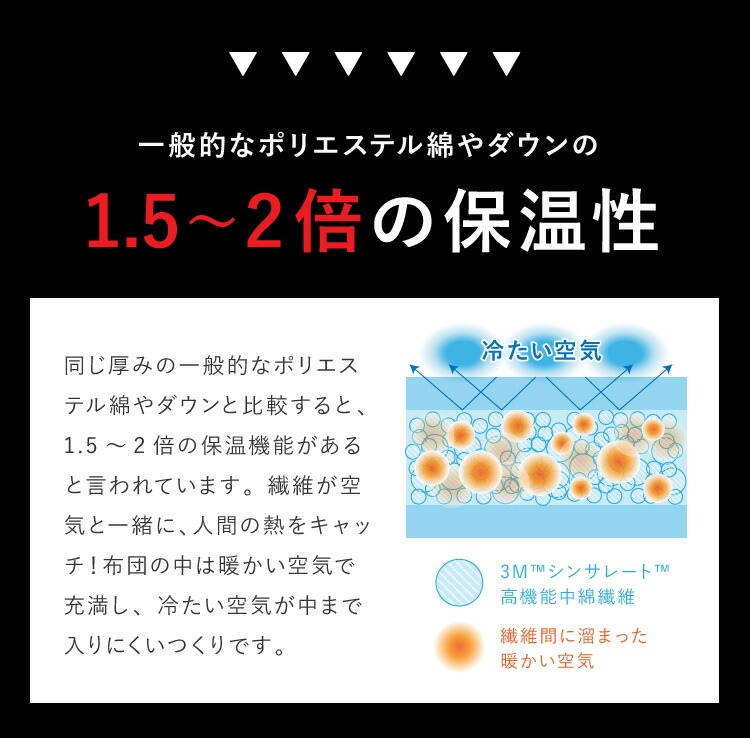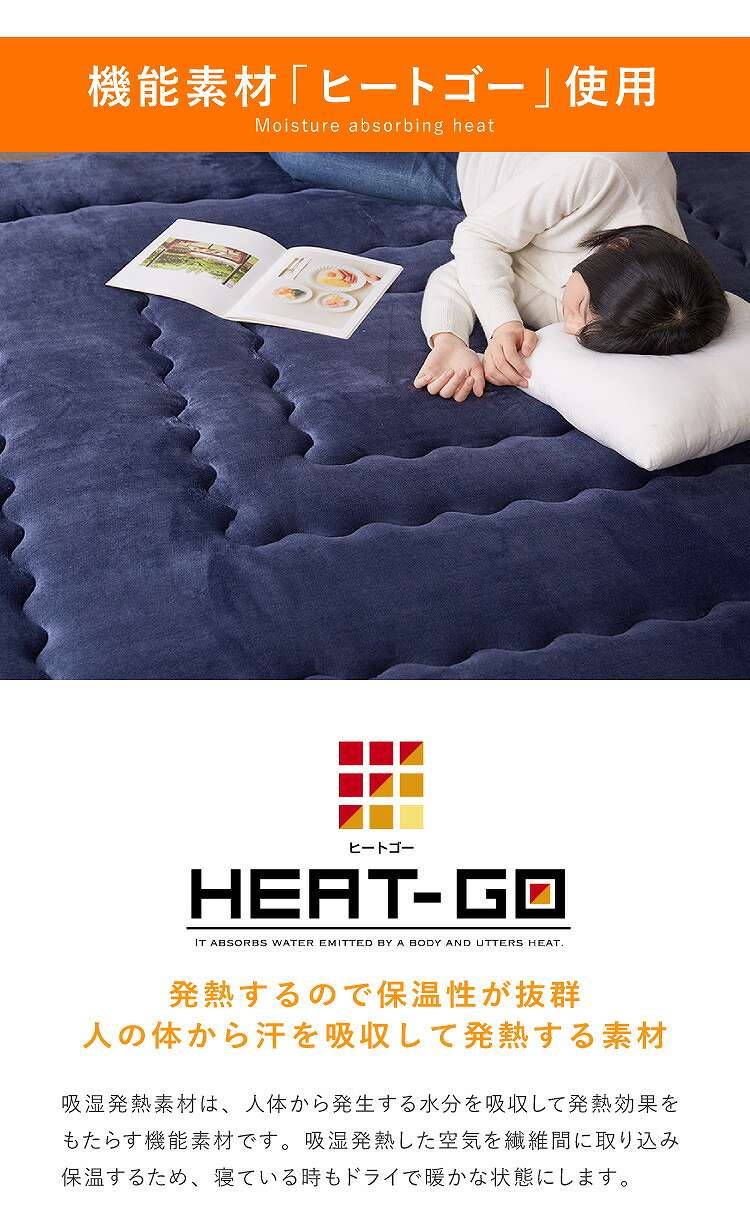 | 原材料/素材/材質 | 表地:ポリエステル100%(フランネル吸湿発熱加工) 中材:シンサレートシート、アルミ不織布、ポリエステルわた、固わた、ポリエチレンシート 裏地:不織布(ノンスリップ加工) |