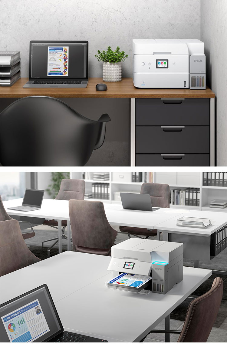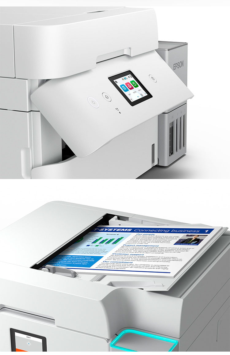 QRコードを読み込むだけでスマホとの接続が可能。普通紙を最大250枚セットできる給紙カセットやインク補充、残量確認も前面操作でできるので省スペースに貢献します。自動両面印刷、有線/無線LANにも対応。