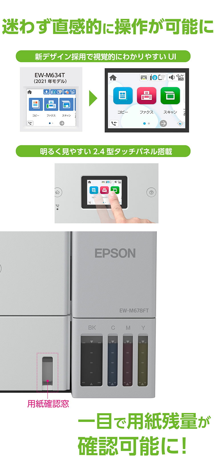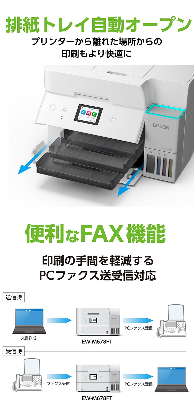 複合機 プリンター EPSON EW-M678FT エコタンク搭載モデル A4カラー複合機 コンパクトサイズ 無線LAN対応 エプソン