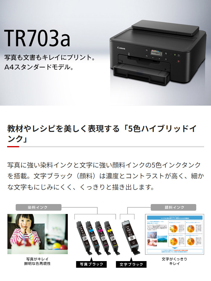 CANON A4 インクジェットプリンター スタンダードモデル TR703a