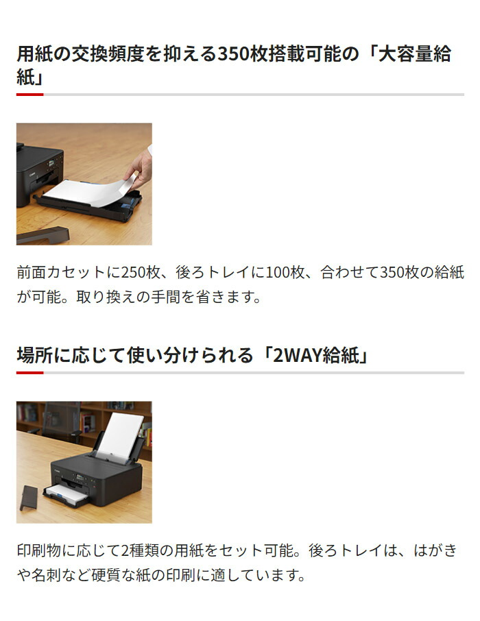 後トレイ:普通紙、光沢紙※4、マット紙※4、郵便はがき、インクジェット郵便はがき、インクジェット光沢郵便はがき、当社純正はがき、郵便往復はがき※3、封筒、フォトシールセット※4、貼ってはがせるプリントシール※4、オリジナルマグネットシート※4、ファインアート紙※4、アイロンプリントシート※4