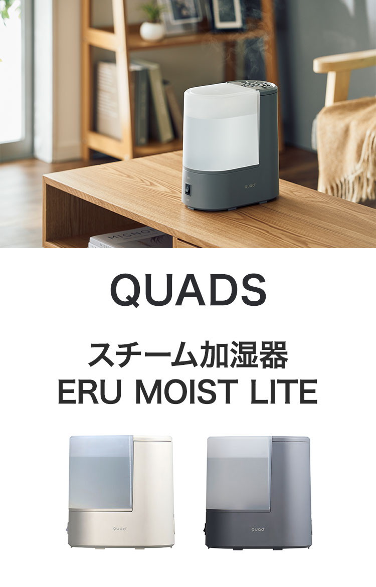 スチーム加湿器 1.8L コンパクト シンプル 一人暮らし アロマ 空焚き防止 ERU MOIST LITE エルモイストライト QUADS QS548 アイボリー