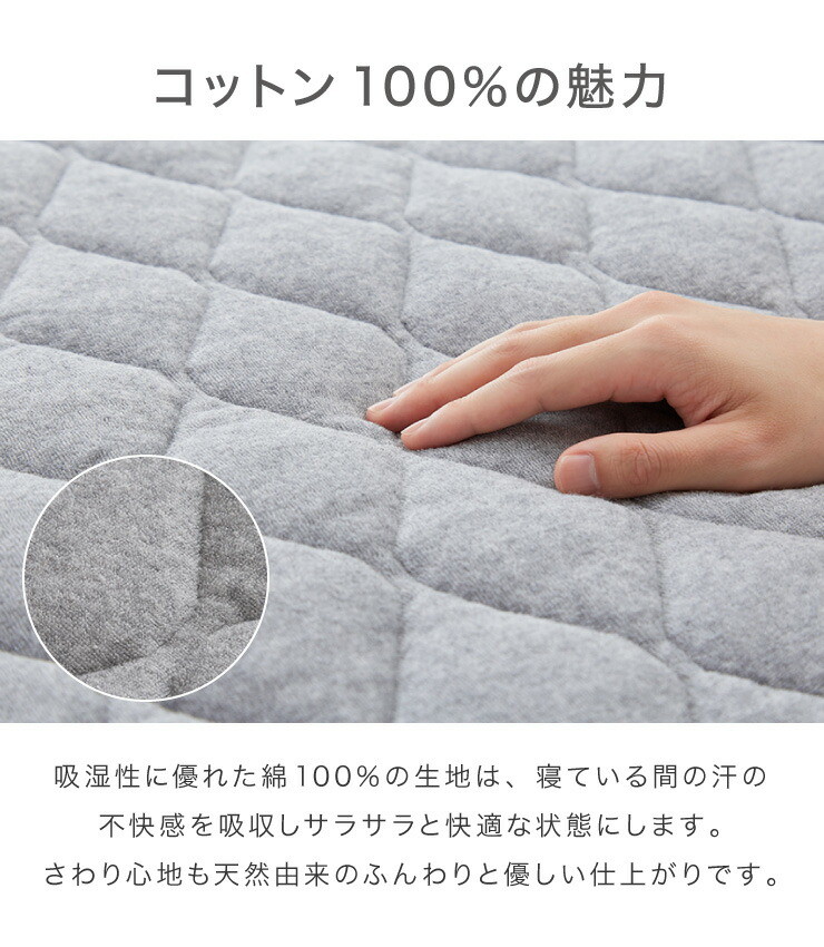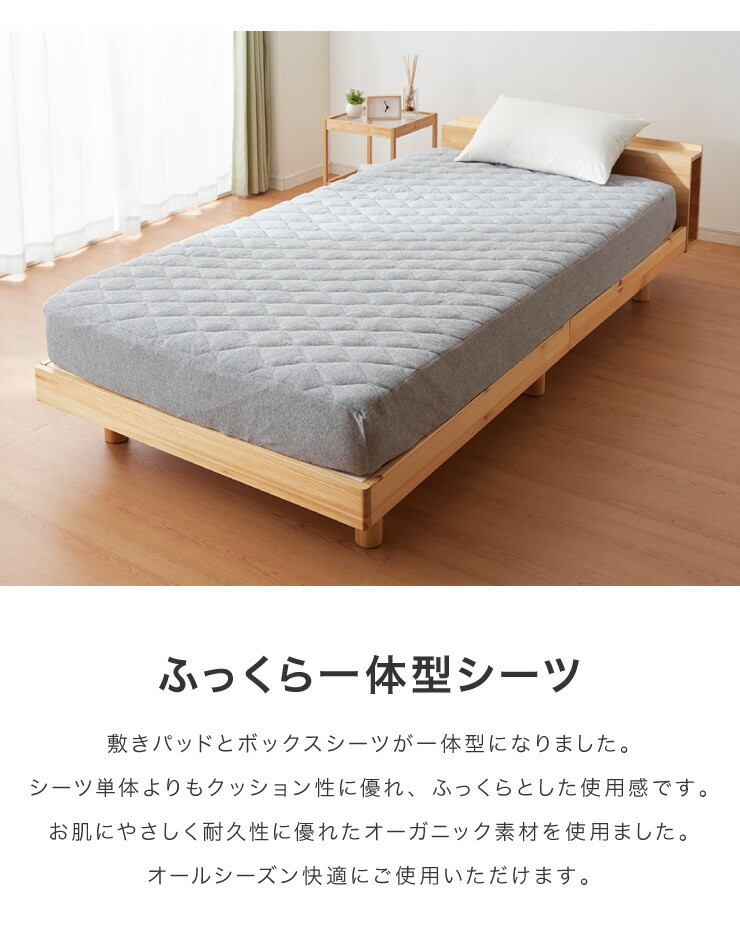ベッドパッド ボックスシーツ 敷きパッド パッド一体型 綿100% オーガニックコットン シングル S 洗える カバー グレー